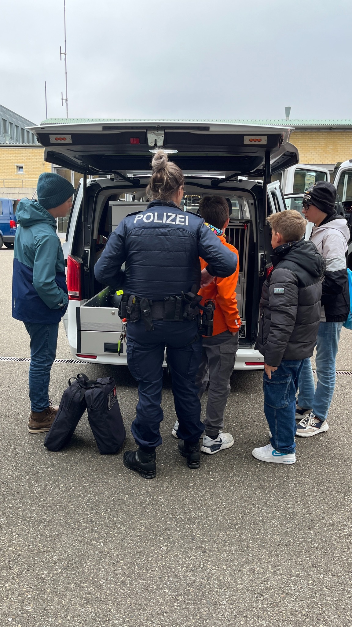 Unter anderem wurden ihnen verschiedene Polizeieinsatzfahrzeuge vorgestellt und Betäubungsmittelspürhund “Chess” zeigte sein Können.